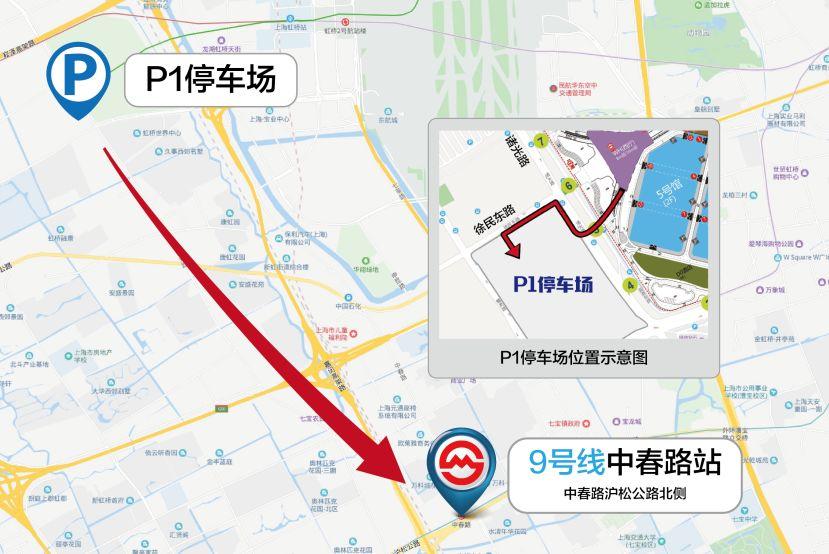 国家会展中心—P1停车场—乘坐接驳公交—9号线中春路站