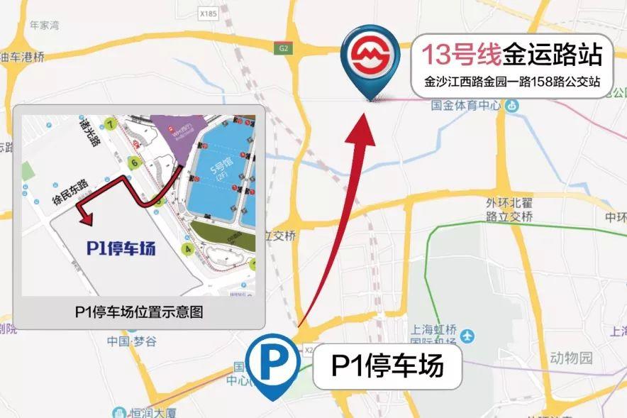 国家会展中心—P1停车场—乘坐接驳公交—13号线金运路站