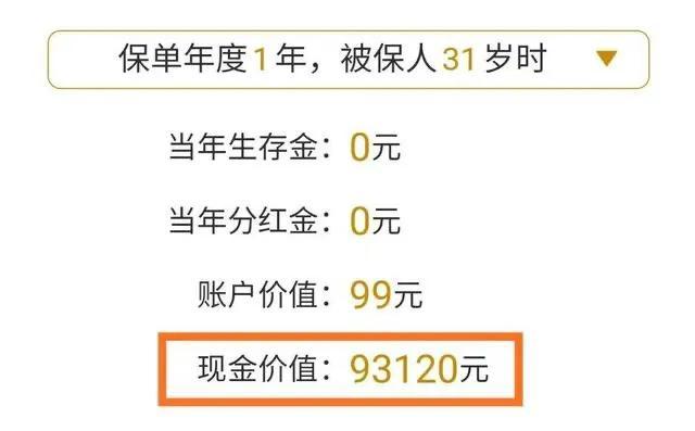 ,首年现金价值即可达到所交保费的93%左右(这点比市面上很多年金险的现价都高)。缴费期可选择3年或者5年,一般6年以后现价超过本金。